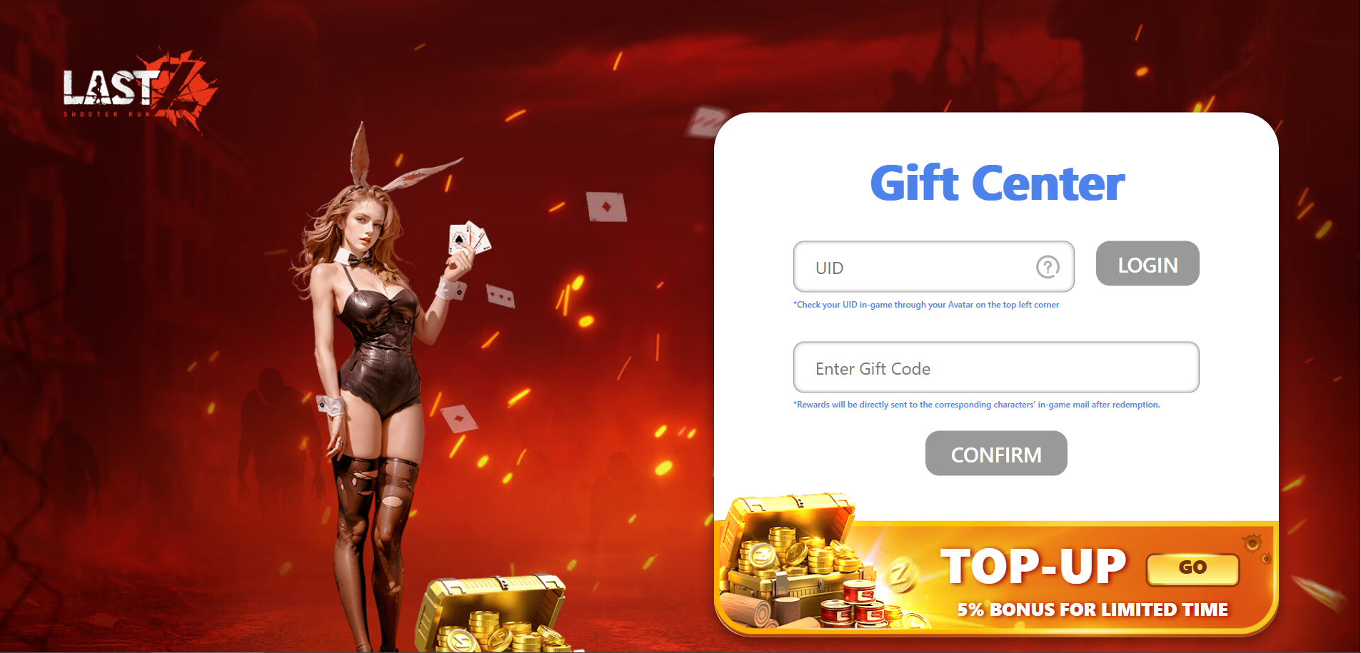 - Open your web browser and go to: https://last-z.com/giftCenter/#/login.