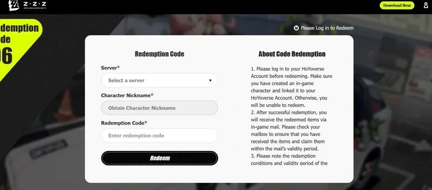 - Visit the Official ZZZ Redemption Website
