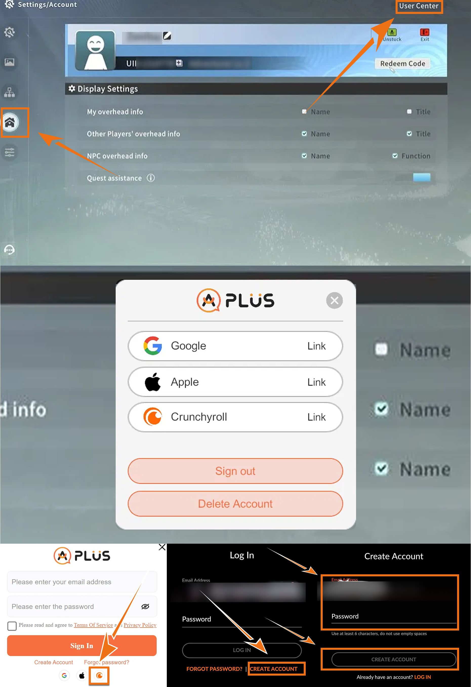 En la pantalla de inicio de sesión, haz clic en el "Icono de tres personas", o entra al juego y ve a "Configuración > Centro de Usuario" para vincular tu cuenta.