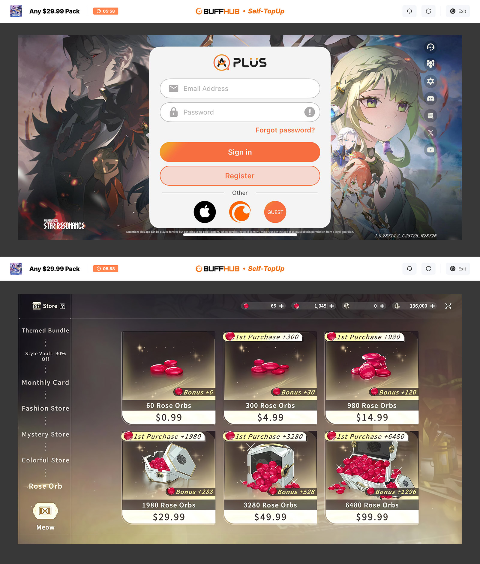 ¡Blue Protocol: Star Resonance ya está disponible oficialmente! BUFFHUB ofrece a todos los aventureros el servicio de recarga de recursos en línea más rápido, seguro y económico. Obtén descuentos exclusivos en Orbes de Rosa para conseguir fácilmente tus atuendos favoritos, equipos poderosos y skins limitadas. Gracias a nuestra conexión con canales oficiales, disfruta de un servicio sin riesgos ni demoras para una aventura más tranquila en Regnus.