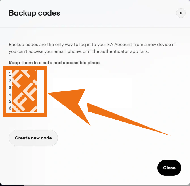 3 Follow the system prompts to view and copy your Backup Codes.