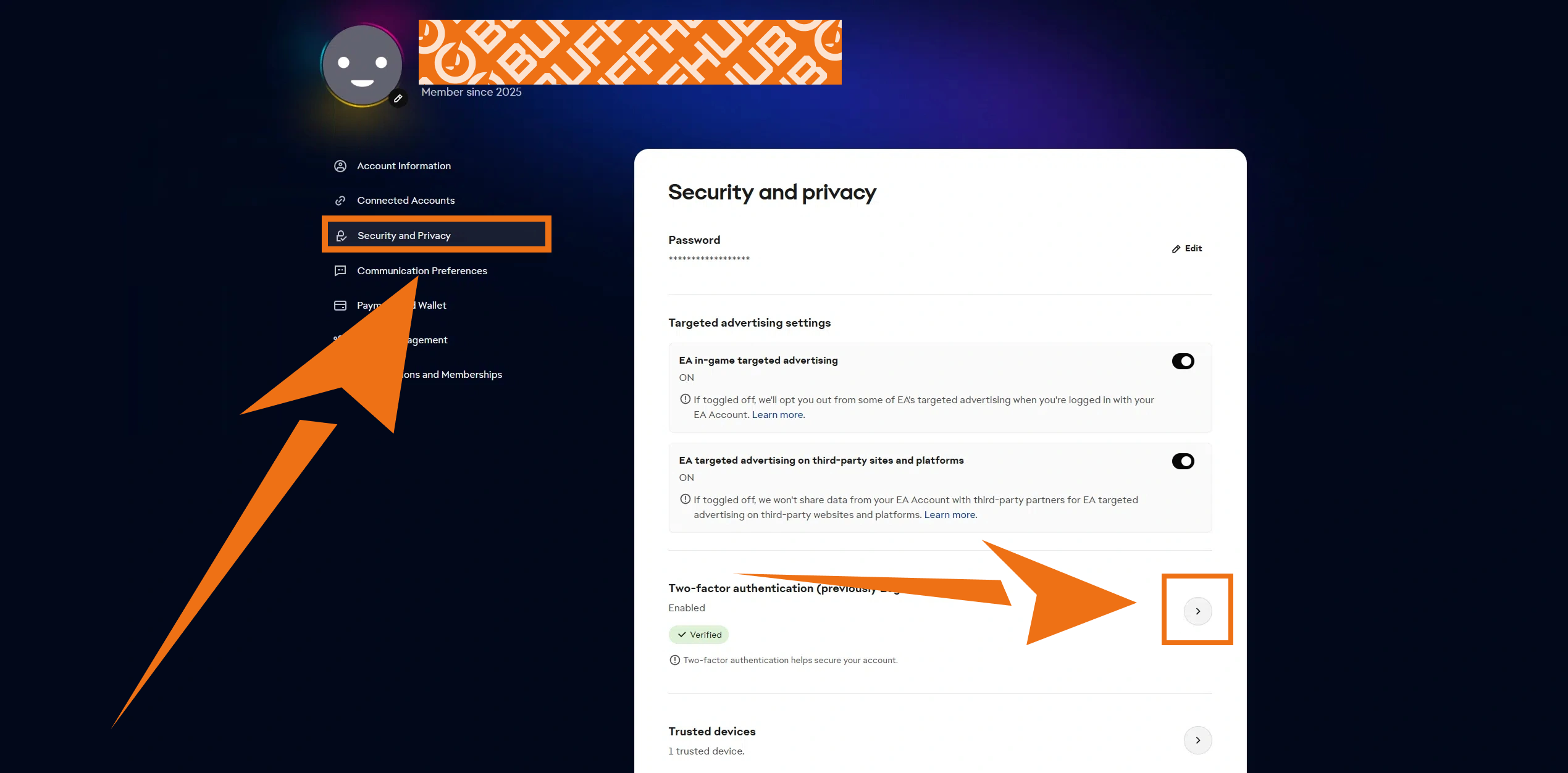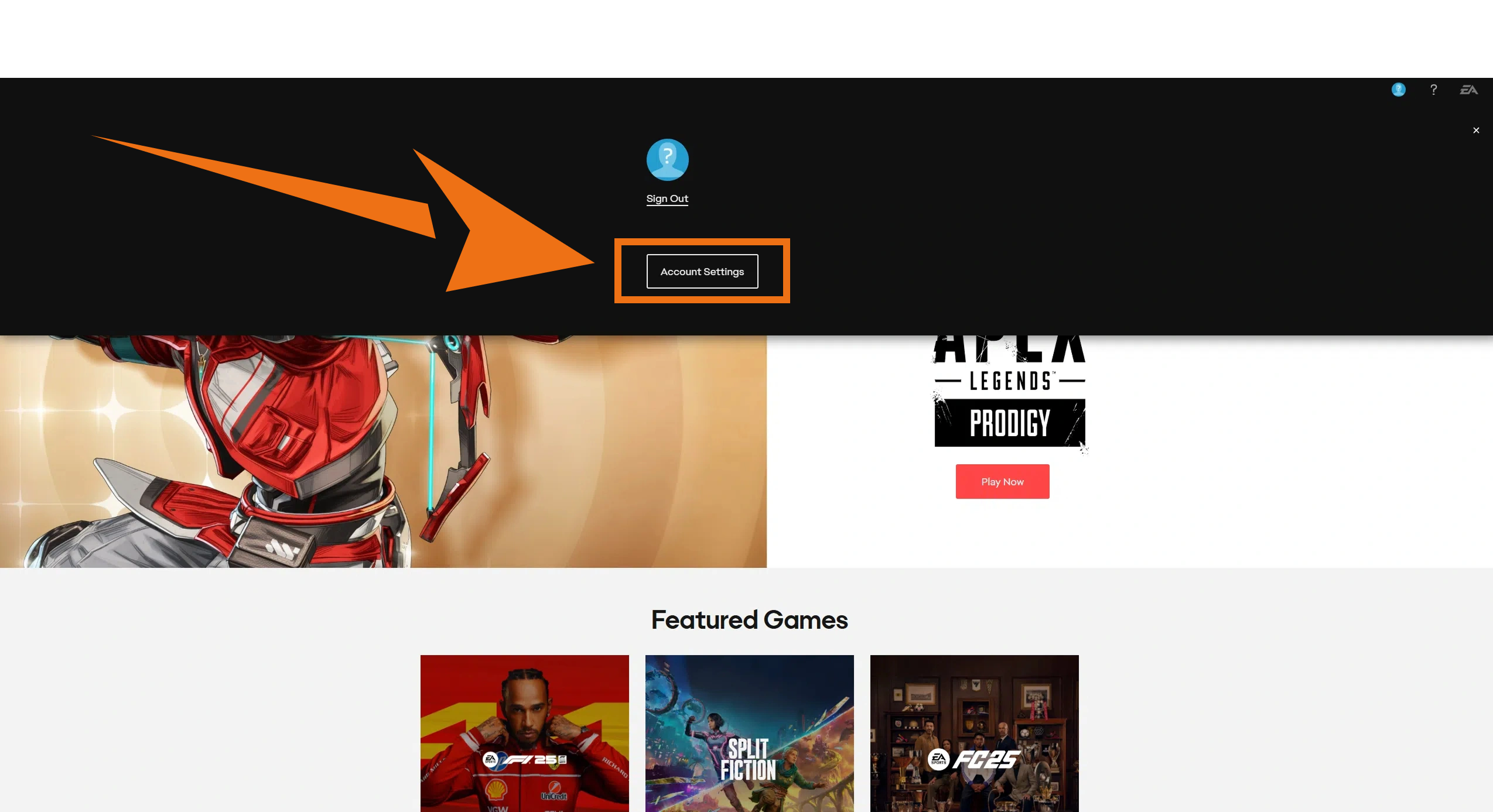 1 Go to the official EA homepage and enter "Account Settings".