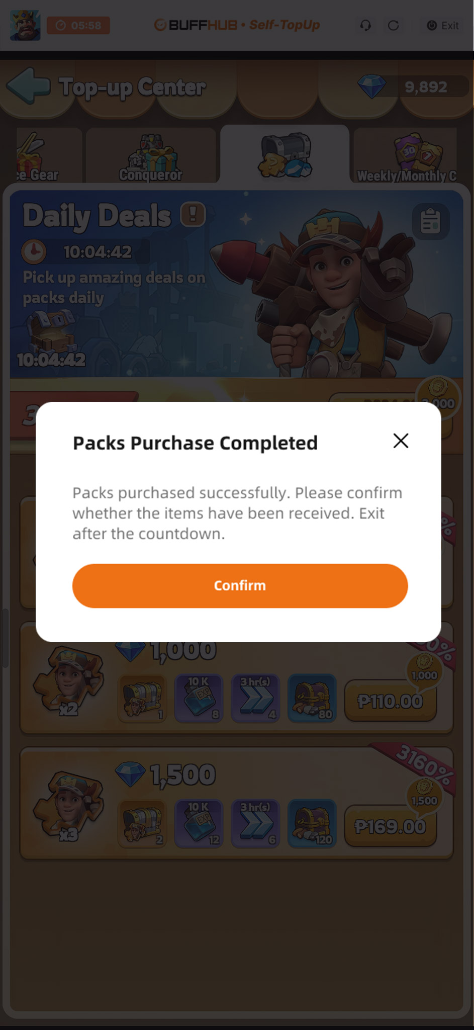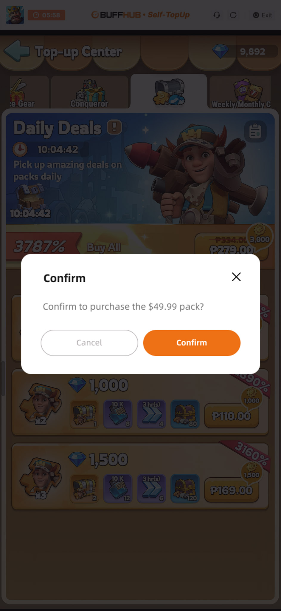Choose your desired gift pack on BUFFHUB and click "Self-service Top-up" after payment to start.
